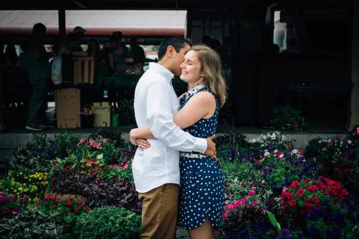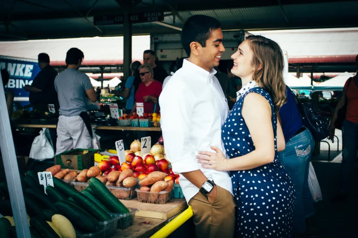Incorporating food into their engagement shoot felt natural, we spent the morning at the farmer's market, and planned a picnic to follow. Unfortunately the rain stopped the picnic, but it didn't stop there love from shining through! I adore these two and was so grateful to spend time with them on their short visit to the states!